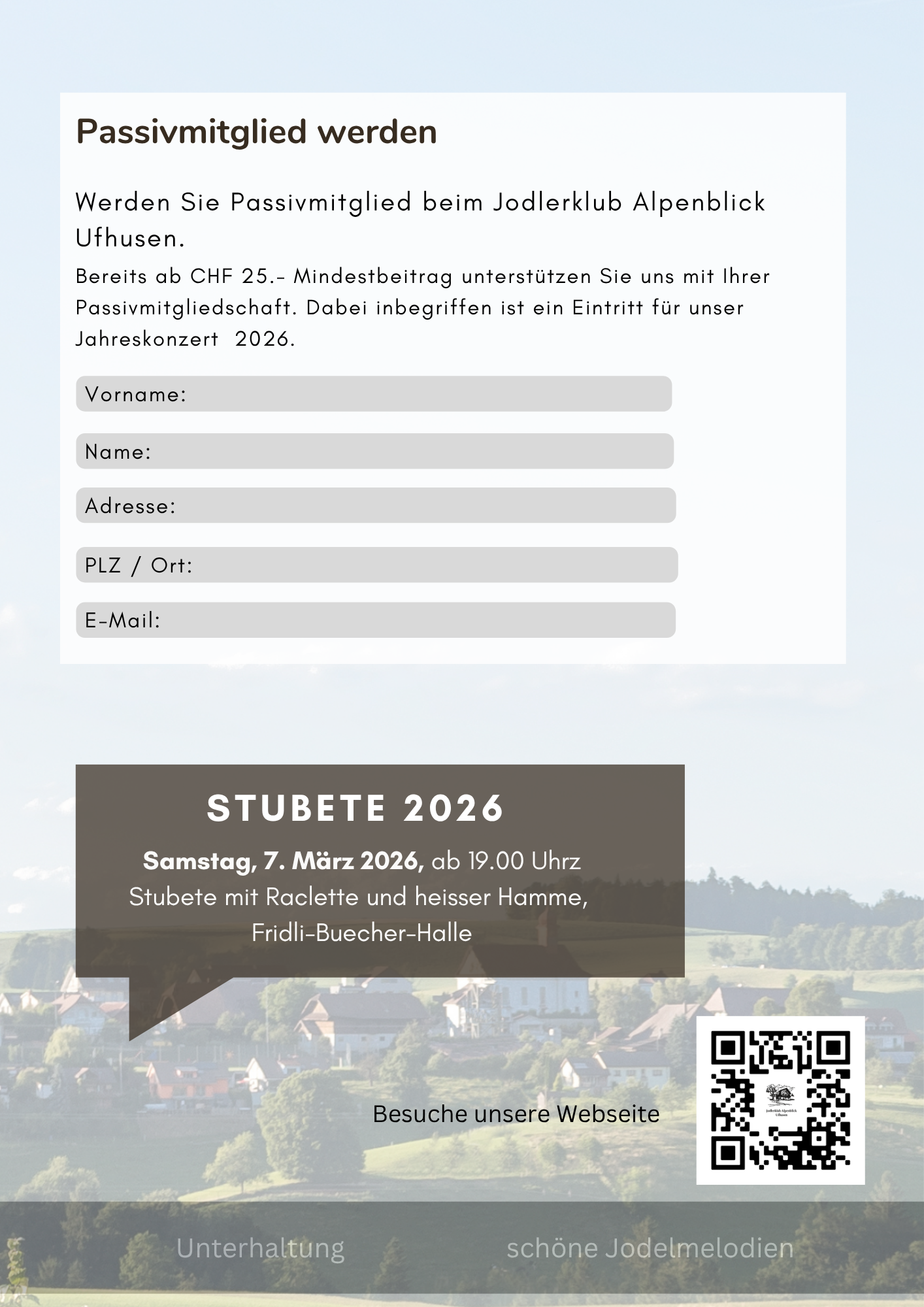 Der Jodlerklub Alpenblick freut sich auf ihren Besuch und heisst alle herzlich willkommen in Ufhusen.